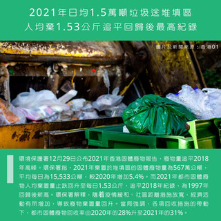 #2 2021年日均1.5萬噸垃圾送堆填區 人均棄1.53公斤追平回歸後最高紀錄